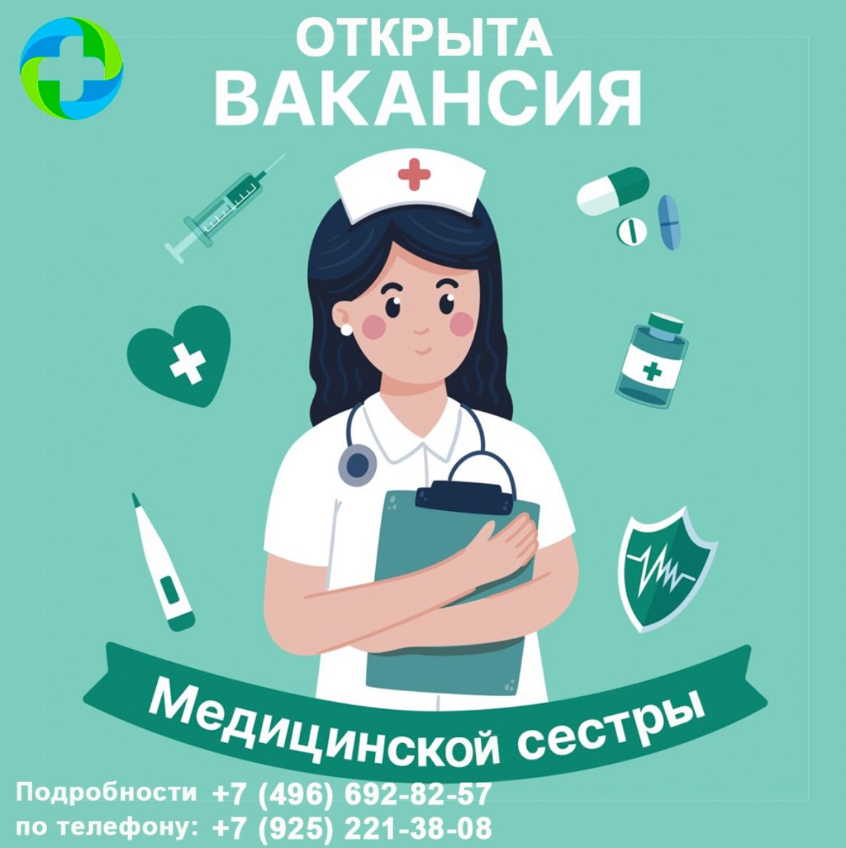 Открыта вакансия медицинской сестры!Заработная плата от 50 тыс. рублей.Подробности по телефону:+7(496) 695-82-57